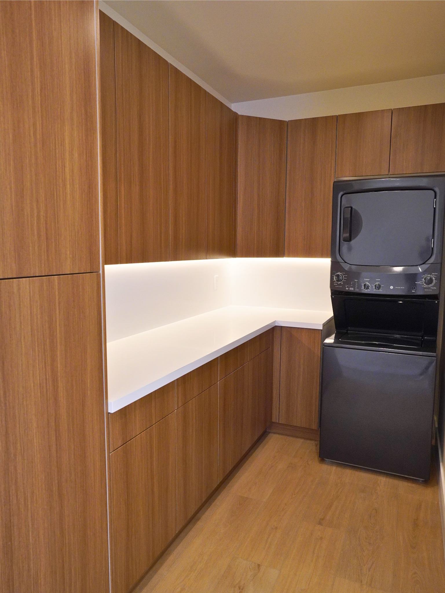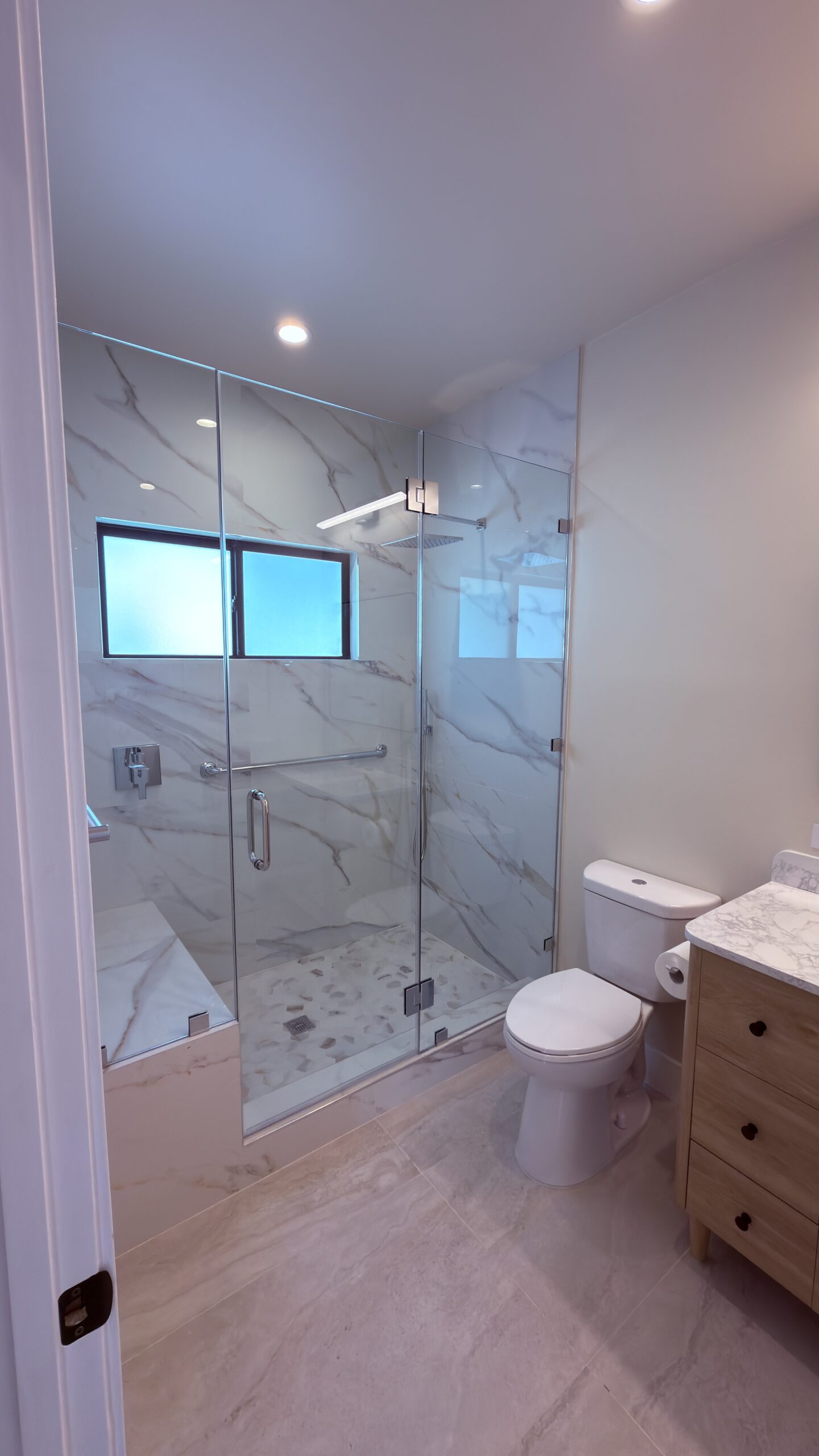 The kitchen includes custom cabinetry, quartz countertops, and recessed LED lighting. The bedroom offers comfortable proportions and closet space, while the bathroom features a walk-in shower, floating vanity, and modern fixtures. This Walnut ADU was delivered through our full design-build process, managing planning, permits, construction, and final inspections.